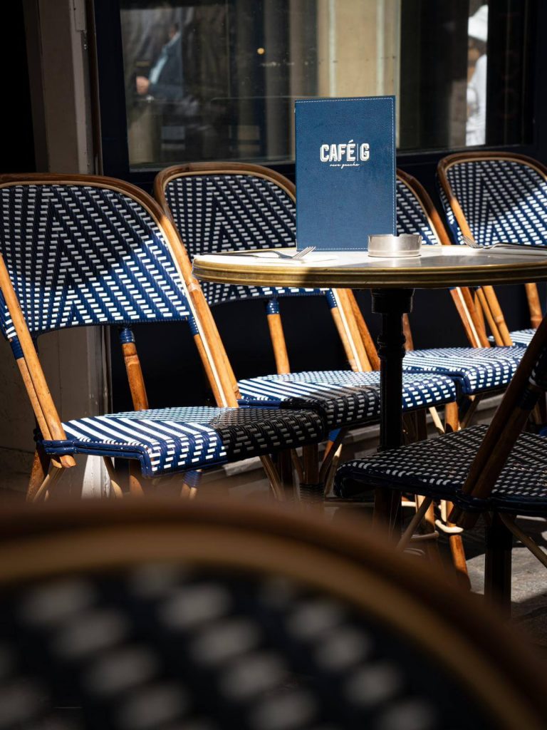 Le Café G se distingue par sa terrasse, l’une des plus séduisantes de Paris. Que vous soyez là pour un déjeuner ensoleillé, un dîner romantique ou simplement pour savourer un verre entre amis, notre terrasse est le cadre parfait pour des moments inoubliables. Laissez-vous charmer par notre atmosphère conviviale et relaxante, où chaque visiteur est reçu avec le plus grand soin.